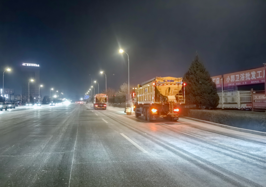 洒水作业车洒布液体融雪剂、滚雪车轰鸣着清理路面积雪、小型融雪剂布撒车穿梭在背街小巷……经过多个小时高效作业,第一轮重点区域融雪剂覆盖全面完成。除了市区,环卫部门还在乡镇兴庆路、永通路、新科路、滨河旅游大道路段、苏银产业园京河大道,长河大街,鸿雁街,佳木路进行集中清雪作业,抛洒融雪剂。并在206座公厕门前铺设防滑垫,确保公共设施正常运行。此时,街头的车流平稳行驶,路面却不见积雪和薄冰,市民们驾车、步行都顺畅无阻。
